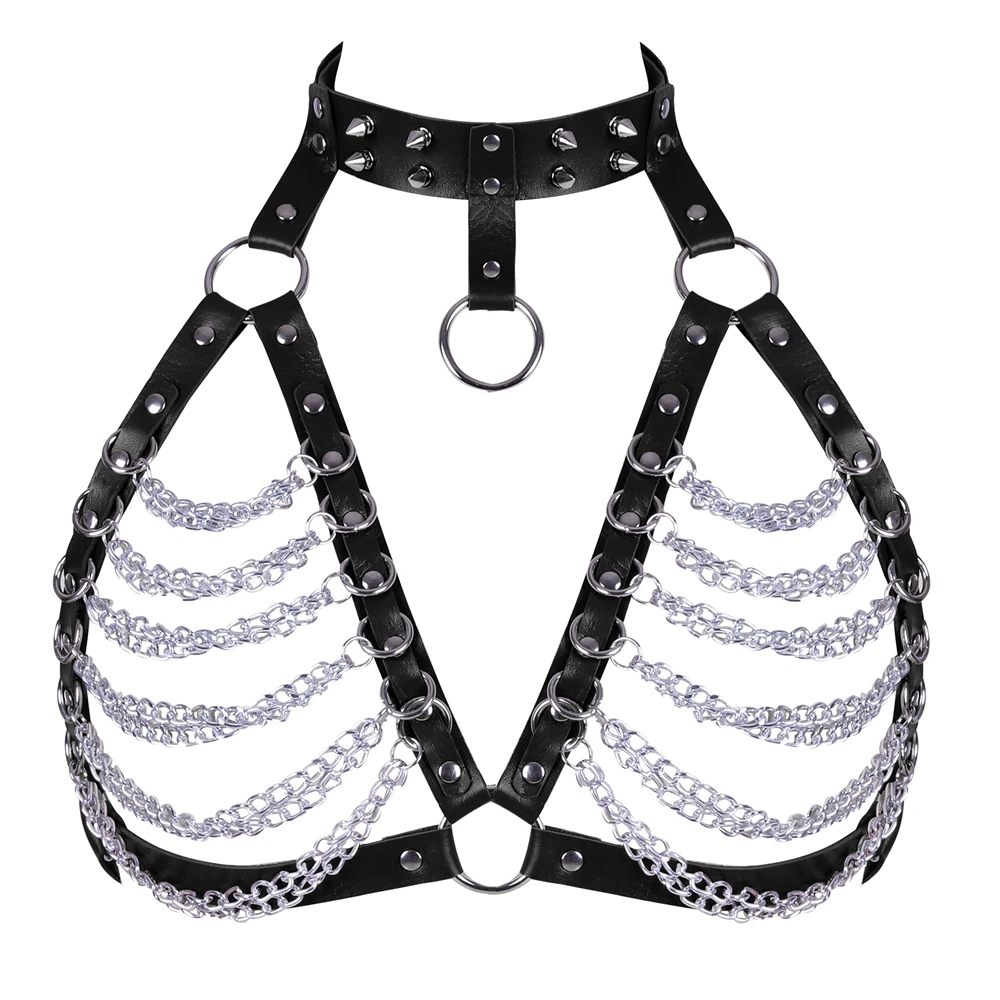 Women Fetish Sexy Lingerie Gothic PU Leather Body Harness Cage Bra Body Cage Sculpting Erotic Rave Wear Fashion Underwear Harnes
