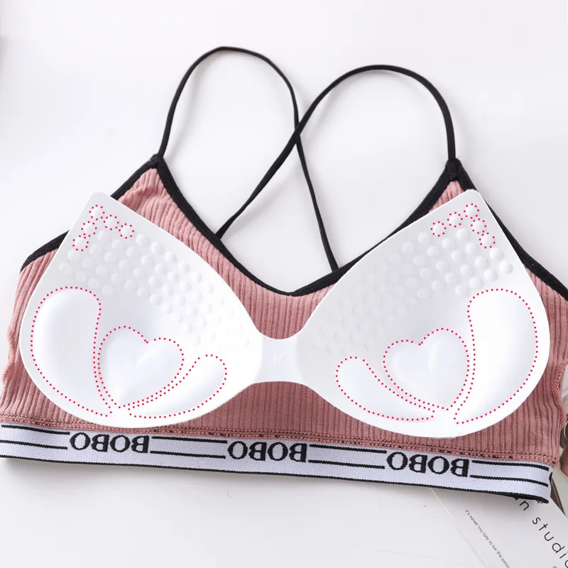 Roseheart Sexy Women Fashion Pink Wireless Lace Padded Bras Cross Back Push Up Female Bralette Cup 90 A B Underwear Plus Size