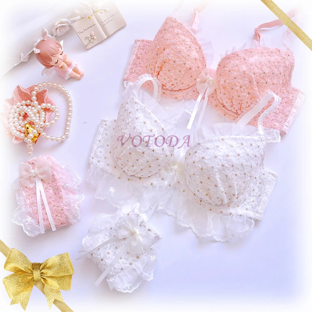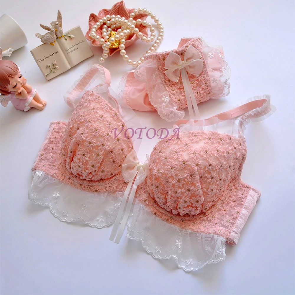 Limited Chance for Sweet Lolita Lace Embroidery Woman Bra And Panties Set Fancy Women 's Underwear Set Sexy Lingerie Soft Thin Cup Gather Bras Tops