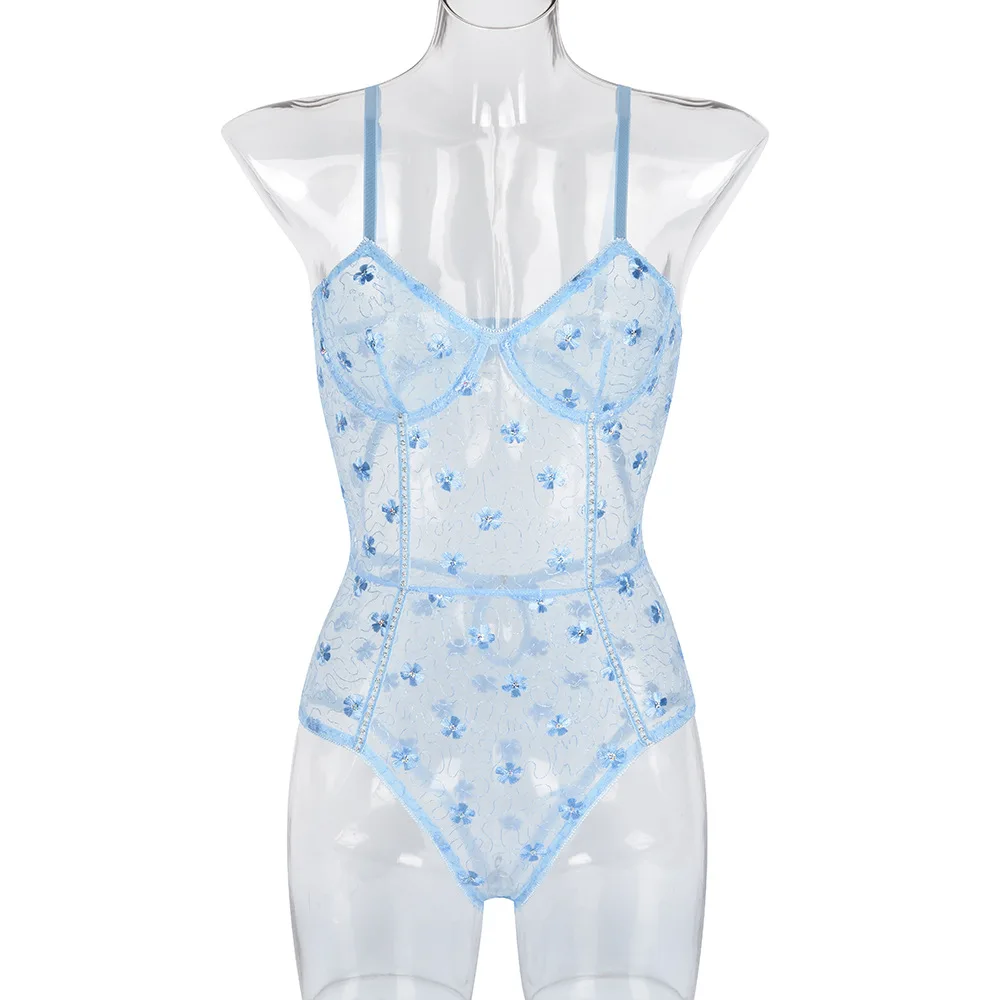 .Gallery for Sexy erotic jumpsuit lace lingerie small chrysanthemum mesh stitching perspective with steel ring jumpsuit conjunto sexy mujer