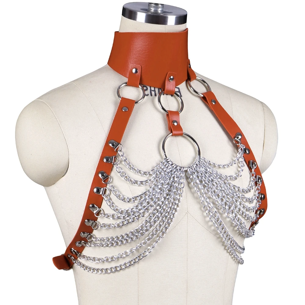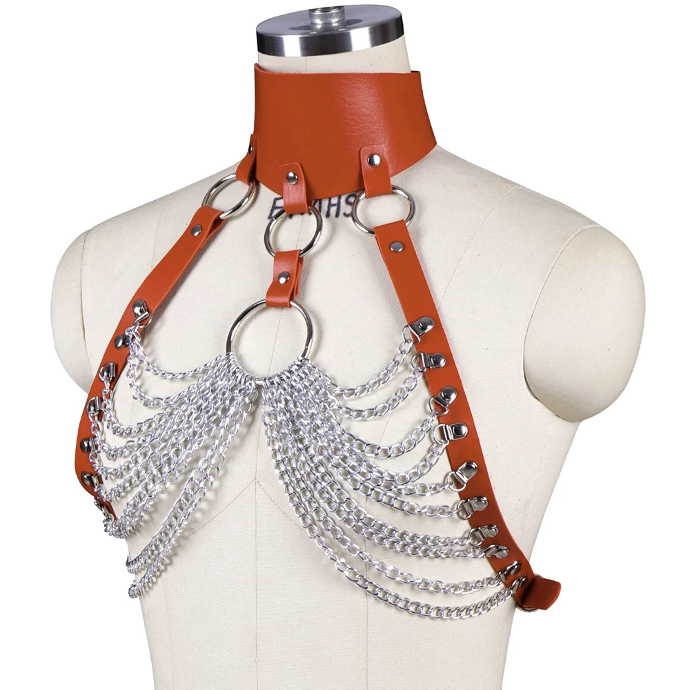 .Gallery of Women Bondage Harness Fetish Leather Neck Collor Leather Underwear Sexy Lingerie Body Harness Belt Gothic Crop Tops Bralette